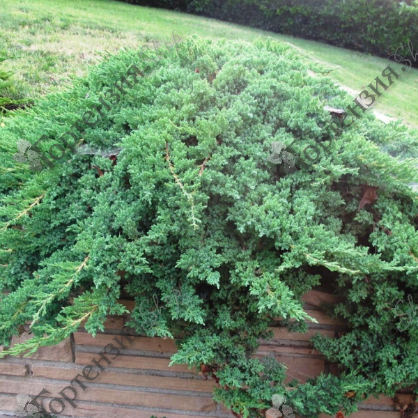 Можжевельник лежачий 'Нана' -  неприхотлив, предпочитает солнечные места, но выносит небольшое затенение. Отличается плотной сильноветвистой кроной с приподнимающимися верхушками побегов и короткой голубовато-зеленой хвоей. Стелющаяся низкая форма высотой до 0,4 м и диаметром кроны до 1–1,5 м. Побеги расположены густо и образуют подушки. Хвоя игольчатая, образует мутовки, голубовато-зелёные.