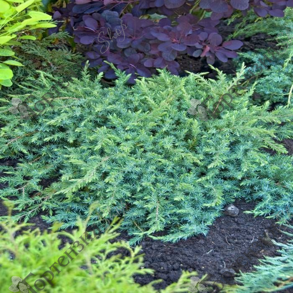 Можжевельник стелющийся 'Шлагер' Juniperus conferta 'Schlager', также известный как японский стелющийся можжевельник, представляет собой впечатляющее вечнозеленое растение, характеризующееся густым, ковровым ростом. Хвоя сине-зеленая, зимой приобретает бронзовый отблеск, и выглядит привлекательно круглый год. Это неприхотливое в уходе растение идеально подходит для солнечных и частично затененных мест и хорошо растет на хорошо дренированных песчаных почвах. Японский стелющийся можжевельник вынослив и не требует особого ухода, что делает его прекрасным выбором для садоводов, ищущих простое, но декоративное решение. Благодаря своей выносливости Juniperus conferta 'Schlager' идеально подходит в качестве почвопокровного растения, для укрепления склонов или для озеленения альпинариев. Его густые ветви также служат защитой и средой обитания для многочисленных насекомых и мелких животных, что делает его экологически ценным дополнением к любому саду.