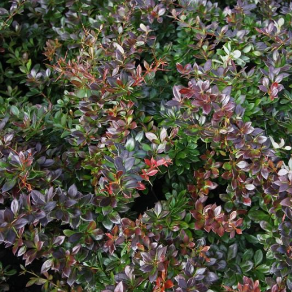 Барбарис средний Ред Джевел (Berberis media 'Red Jewel' ) - невысокий кустарник с густой, подушкообразной кроной и многочисленными побегами высотой до1,5 м. и диаметром кроны до 1,5 м. Листья мелкие, летом зеленые осенью красно оранжевые, слегка блестящие, удерживающиеся на кустарнике до поздней осени. Цветёт в мае. Плоды овальные, черные, созревают в первый месяц осени и остаются на кусте почти до весны. Светолюбив. Зимоустойчив и засухоустойчив. Используется в одиночной и групповой посадке и как элемент живой изгороди.