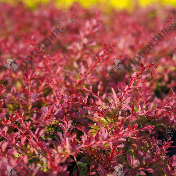 Барбарис тунберга Оранж Карпет (Berberis 'Orange Carpet') кустарник с колючей, раскидистой, кроной высотой до 50-70 см и шириной до100 см. Листья красивой овальной формы, красно-оранжевого цвета в тени окраска листа становится зеленой. Цветет  в мае мелкими желтыми цветами в кистевидных соцветиях, но благодаря ярким оранжевым листьям цветы остаются неприметными. Плоды ярко красные, овальные созревают в августе-сентябре, остаются украшением сада почти до весны. Барбарис тунберга хорошо подходит для оформления живой изгороди, бордюров, в групповых и одиночных посадках. Морозостойкость -34С.