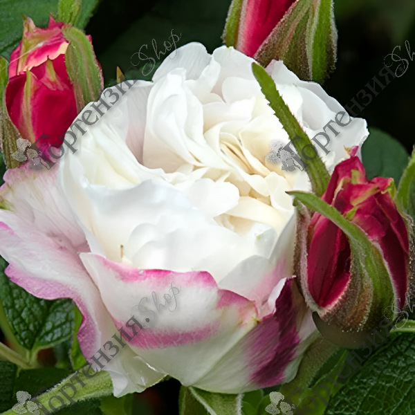 Роза Ругоза (Rosa rugosa) канадская 'Louise Bugnet' - Создан канадским селекционером Георгом (Джорджем) Багнетом в 1960 году. В  селекции использована роза морщинистая, от которой сорт унаследовал устойчивость к морозам, болезням и неблагоприятным факторам. Очаровательная роза канадской селекции Луиза Багнет выделяется среди всех остальных жемчужно-розовыми, пастельно-розовыми и белыми цветами. В высоту цветок вырастает до 120 см. В одной кисти побега образовывается от 3 до 5 бутонов. Листья у цветка плотные, ярко-зеленого цвета, глянцевые и равномерно покрываю-щие снизу доверху все ветки. На побегах практически отсутствуют шипы, лишь изред-ка встречаются одинокие колючки. В начале цветения на кусте образуются бутоны ярко-вишневого цвета, из которых впоследствии появляются белые лепестки с зеленоватым отливом. Зона зимостойкости: 3 (-40С).