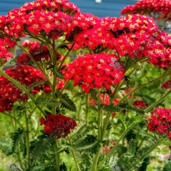 Тысячелистник обыкновенный Red Velvet Achillea millefolium 'Red Velvet' - неприхотливый многолетник высотой до 70 см. Листья расположены в очередном порядке, дважды или трижды перисто-рассеченные с многочисленными ланцетовидными сегментами. Корзинки до 0,7см в диаметре собраны в плотные щитковидные соцветия. Листочки обертки продолговатые с бурым, пленчатым краем. Язычковые цветки красного цвета.