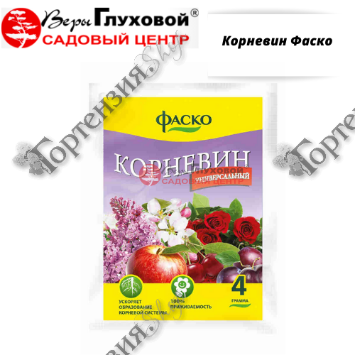 Стимулятор корнеобразования Корневин 4г Фаско Стимулятор роста и развития корней у черенков, рассады, луковиц. Ускоряет корнеобразование, улучшает приживаемость растений при посадке и пересадке всех видов культур. Применяется для плодовых, ягодных, овощных и цветочных культур. Корневин используется для укоренения черенков плодово-ягодных (сливы, вишни, черешни и др.), декоративных (роза, сирень, калина, чубушник и др.), цитрусовых культур, виноградной лозы, а также для улучшения приживаемости растений при посадке и пересадке. Преимущества препарата: улучшает приживаемость растений при посадке и пересадке. ускоряет корнеобразование при черенковании обеспечивает приживаемость рассады при пересадке Корневин применяется в сухом виде и в виде раствора В сухом виде. Опудрить корневую систему саженцев или рассады перед высадкой в грунт. Черенки перед укоренением смочить водой и погрузить их нижнюю часть в препарат. Расход препарата: 4 г на 20-40 черенков. В виде раствора. Содержимое пакета (4 г) растворить в 4 л